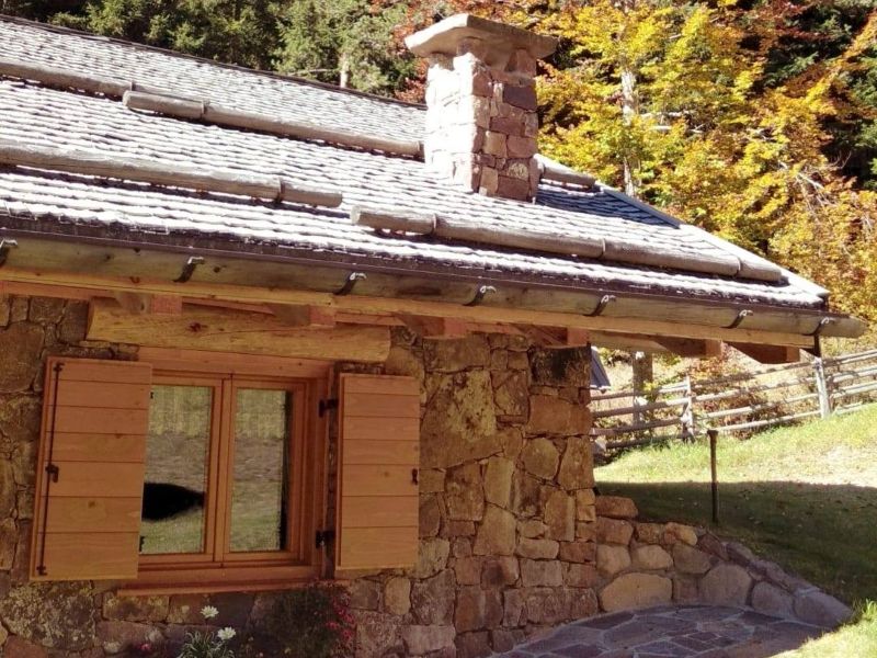 Das geschmackvoll und äußerst hochwertig eingerichtete Chalet wurde aus Natursteinen der Gegend und hauptsächlich aus örtlichem Massivholz errichtet. Es verfügt im ebenerdigen Eingangsbereich über eine gemütliche und geräumige, charmevermittelnde Hüttenwohnküche aus Vollholz mit einem original Trentiner Holzherd- Backofen, einen Gasherd mit 4 Flammen und genügend Sitzplätze für die Hüttenbewohner. Raffiniert in die Hüttenwohnküche integriert befindet sich ein ortsüblicher Kachelofen, der je nach Witterung wohlige Wäreme versprüht.